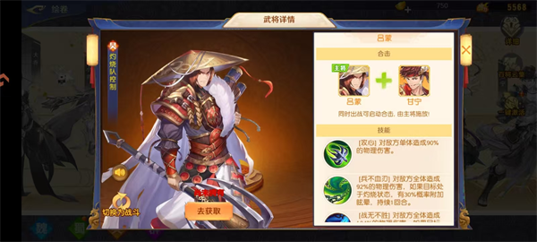 缺点:吕蒙攻击力有限,合击技能输出低,主要是晕眩控制,因此不适合前期培养。甘宁与小乔搭配更默契,即使没有周瑜,甘宁搭配小乔也能实现完美输出。