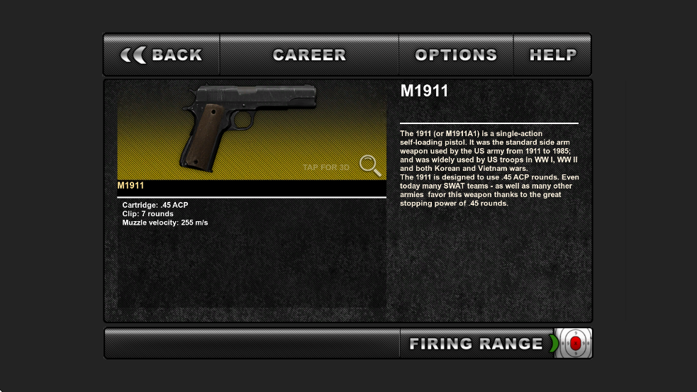 M1911(或称M1911A1)是一款经典的单动式自动手枪,自1911年起成为美军制式配枪,历经一战、二战、朝鲜战争及越南战争。专为发射.45 ACP大口径子弹设计,凭借强大的制止力,至今仍被多国特警及特种部队广泛使用。