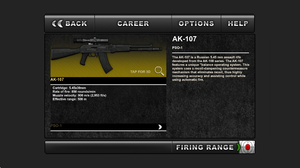 AK-107是基于AK-100系列研发的俄制5.45毫米突击步枪。该枪采用独特的“平衡操作系统”,通过配备减后坐力装置有效抵消枪口上跳,显著提升射击精度,并在全自动射击时增强武器可控性。