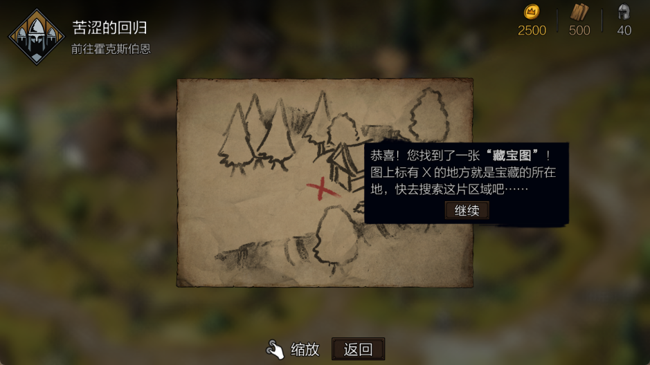 与村民交谈可能获得藏宝图,后续还可通过多种途径收集更多藏宝图。藏宝图可在背包中查看,“X”标记即为宝藏位置,结合地图通常较易定位。