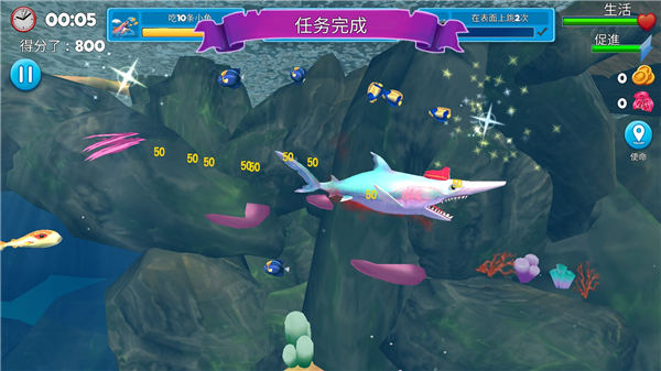 关键道具务必购买,尤其是适用于小鲨鱼的生存类装备,如降低饥饿度的道具等。记住:只有活着,才有机会获得更高分数。