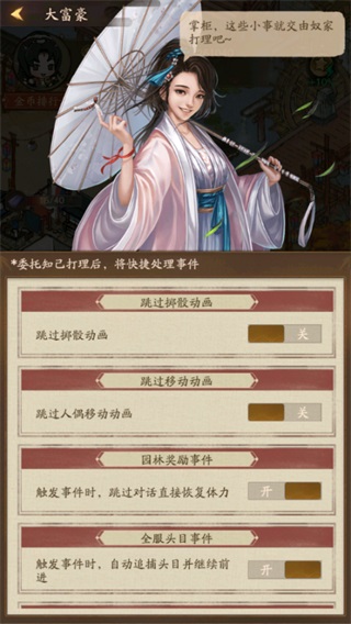 开启“打理”功能后,可委托知己自动处理事件,大幅减少重复操作。