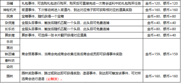 除园林必定触发事件外,其余建筑均为概率触发。特别注意:“快马加鞭”效果仅在驿站有概率激活,常被忽略。