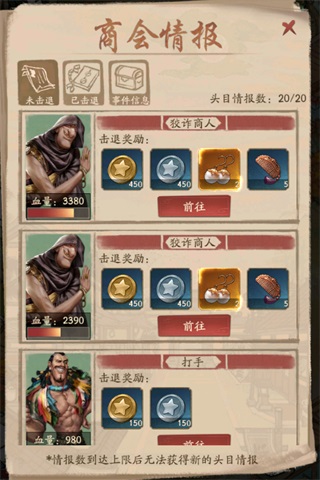 4. 留意商会情报,击退头目奖励丰厚