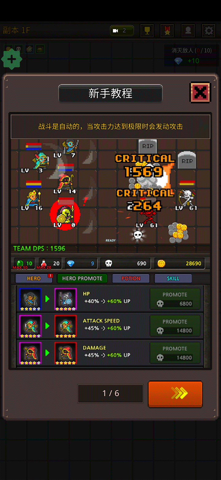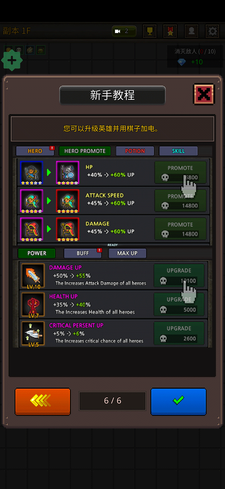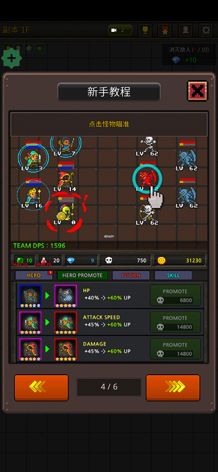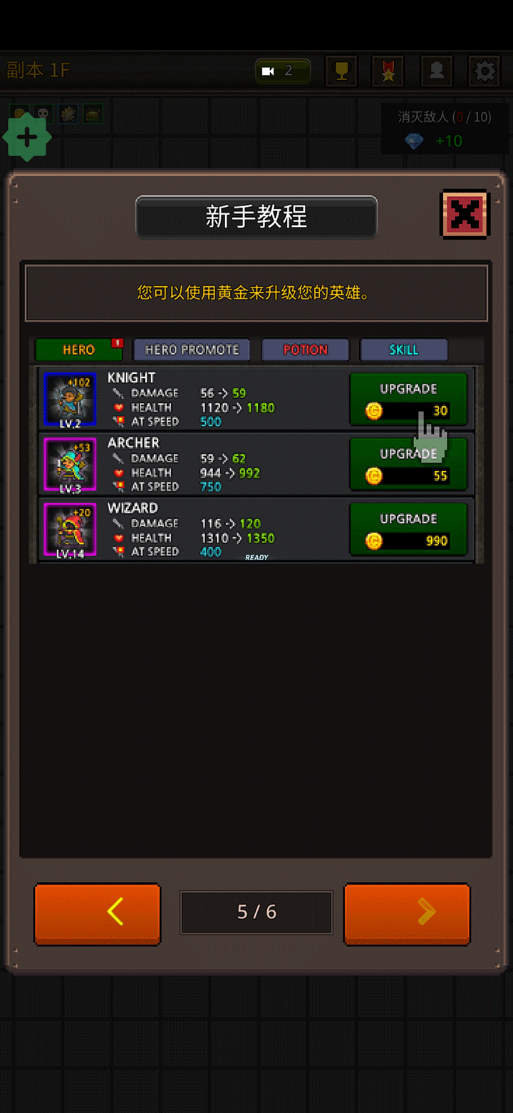 5、每次击败敌人都会获得金币奖励,这些黄金可用于提升英雄等级,全面增强整体战斗力。