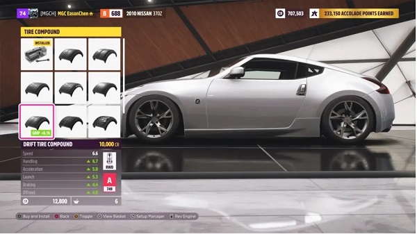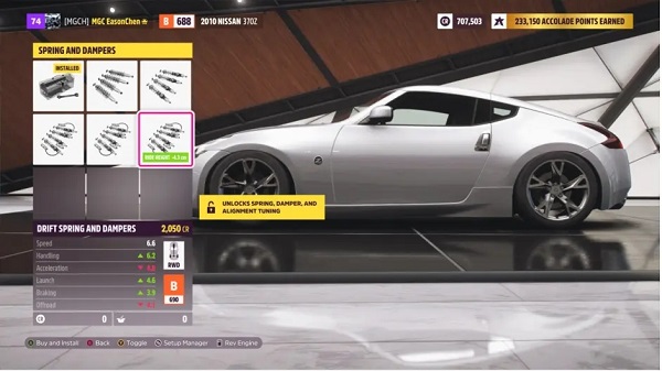 近年来,随着漂移文化热度攀升,《地平线5》也深度融入这一技巧。真正的漂移并非失控打滑,而是从起飘、入弯到出弯全程可控的驾驶艺术。在练习前,合理的车辆改装至关重要。以下以Nissan 370Z为例,详解基础漂移改装方案: