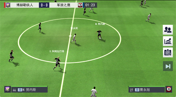 比赛中观察球员射门、传球等“精准操控”系统,关注球员实时表现,根据局势调整战术,尽享真实竞技快感。