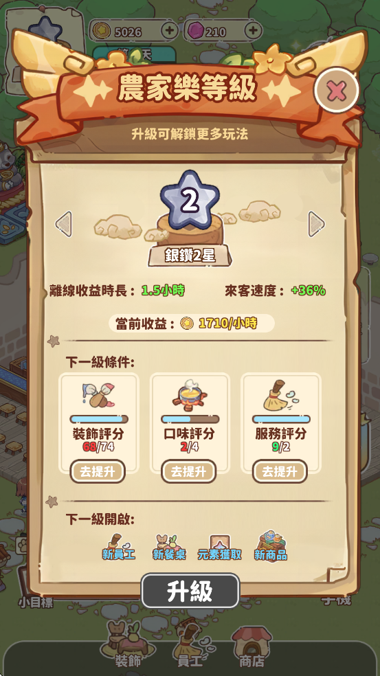 1、解锁和升级菜品
