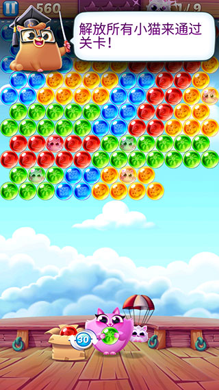 4、成功消除泡泡后,被困在其中的小猫将被成功解救。