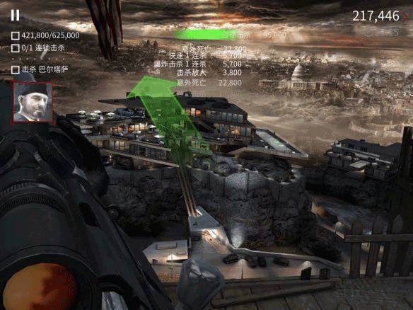 此时,上方另一名警卫会透过玻璃窗观察下方情况。玩家可射击玻璃,使其碎裂并砸中下方警卫,从而一次性完成对两名目标的连锁击杀。