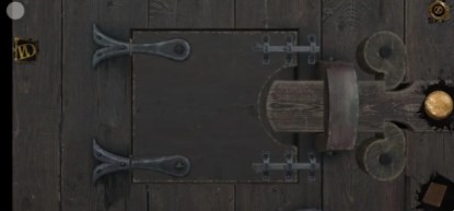 16、回到过去,将轮盘放置在铁门中,对应铁门上的空心圆环将轮盘调好