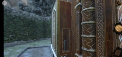 19、调好后门会上锁,再对应石椅上的提示调好指针(这里注意对门眼睛的视角)