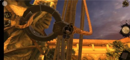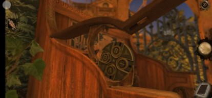 10、回到现在,将画面左转,拖拽左侧机关上方的金属旋钮,再将罗马数盘放置在上面
