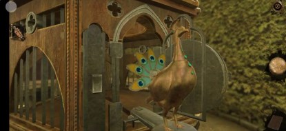 20、然后先解开铁笼门上的机关,点击得到门内侧的旋钮,再将旋钮插入笼子上插口处