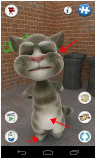 6、按下电话按钮,让汤姆与原版“会说话的汤姆”进行互动,他会用滑稽的声音重复自己的话语。
