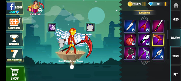 2、选择你喜欢的火柴人角色,包括钢铁侠、鸣人、路飞等众多热门形象,应有尽有;