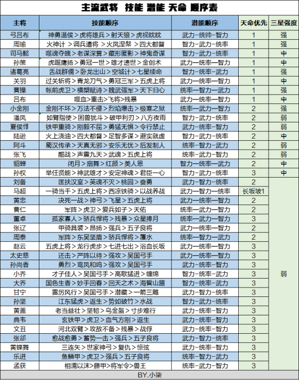 少年三国志零主流主将培养顺序表