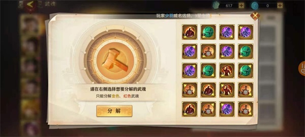 4、进入游戏中期,当主力阵容(如弓吕布、诸葛亮、周瑜、司马懿、曹操、小金刚)均已配备关键部位红魂后,若有富余的同部位红魂,可按需逐步升星。同时,根据自身队伍构成,评估是否需要分解重骑或轻骑类红魂以优化资源分配。