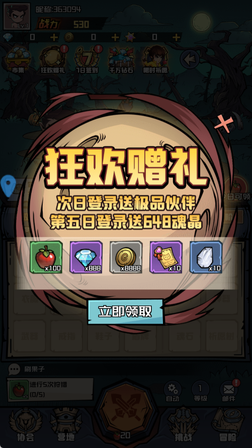 1、玩家首次登录即可领取超值新手礼包,内含金币、强化材料及稀有装备等丰富奖励,助力快速起步。