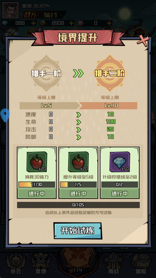4、当角色实力达到一定阶段后,将解锁“进阶试炼”玩法。挑战高难度关卡不仅能检验战力,还可赢取丰厚奖励与稀有道具。