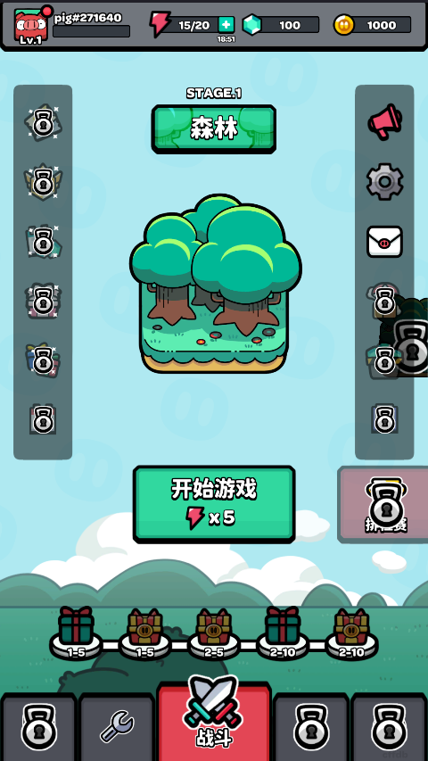 1、进入游戏主界面后,点击“开始游戏”即可进入战斗关卡。