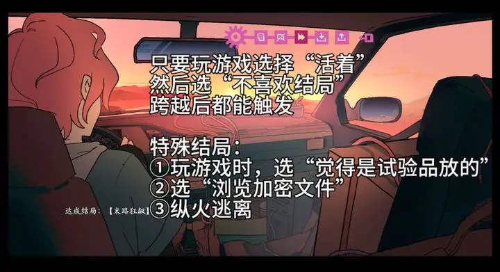 需先达成特定前置结局,再跨越道德界线(包含剧情拆分)。在关键选项中选择具有伤害人类倾向的行为,例如:让实验品放火、查看加密文件,或在逃跑时纵火,即可触发此结局。
