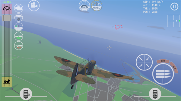 5、成功起飞后,可切换至第一人称视角,瞄准并开火攻击敌机。