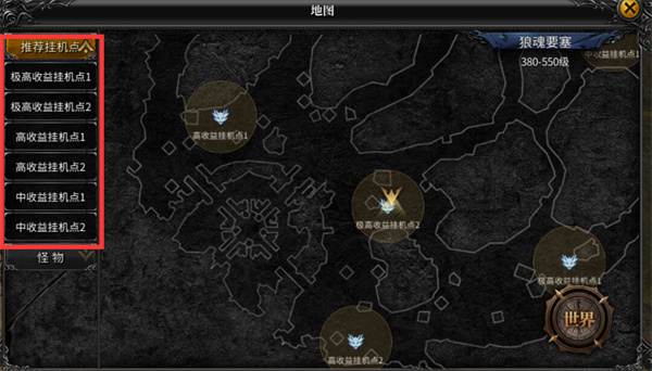 野外挂机升级是主要的升级手段,每个野外地图中都会有推荐挂机点,会员达到一定等级还可以进入黄金线路,黄金线路爆率和经验加成都会更高。进入地图内,点击点图左侧的挂机点可以直接传送到目的地。