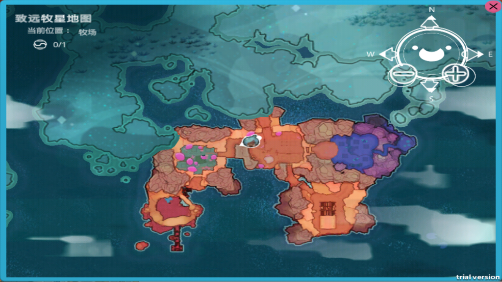 点击打开【牧场地图】,即可查看角色当前所处区域及星球上的各个地图分区,帮助你高效规划探索路线,寻找不同类型的史莱姆与资源点。