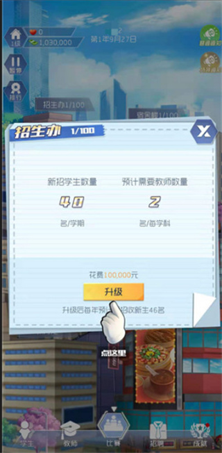 1、学校声望是当前发展的核心指标,只有声望足够高,才能解锁扩招资格。