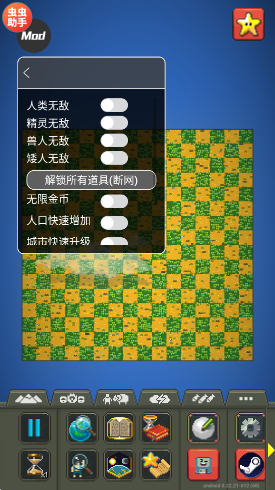 上帝沙盒模拟器全物品解锁中文版是一款融合养成、经营与模拟元素的沙盒手游,内置MOD作弊菜单,自由开启各类功能。玩家将化身万能上帝,创造生命并见证其繁荣发展。