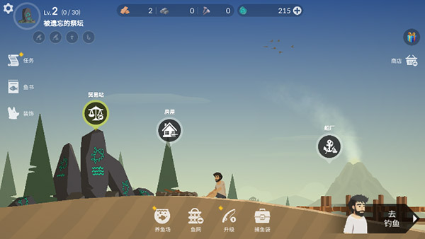 2、钓鱼是初期获取资源的重要方式,不仅能换取基础工具,还有机会获得稀有货币“钻石”。