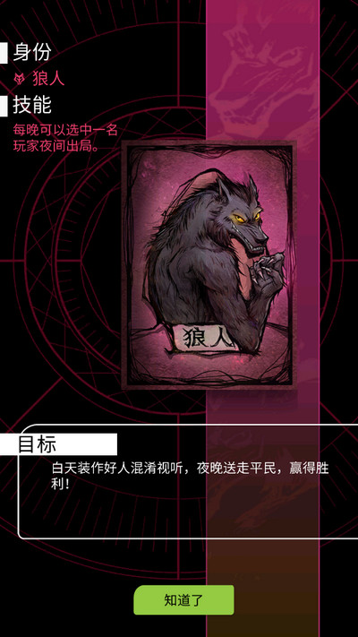 2、确认最终获得的身份后,系统会清晰展示该角色的胜利条件、特殊技能及基本玩法指引,帮助玩家快速进入状态。