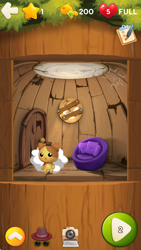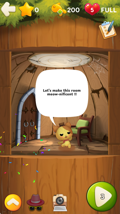 - 赚取星星以购买漂亮的家具来放置到猫咪可爱的家