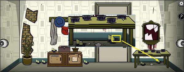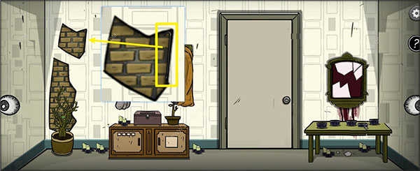 2、抬头查看左上方墙壁破损处,从中取出隐藏道具【棍】。