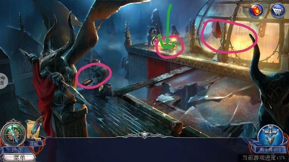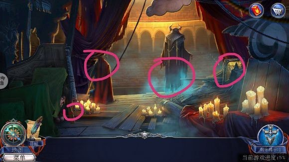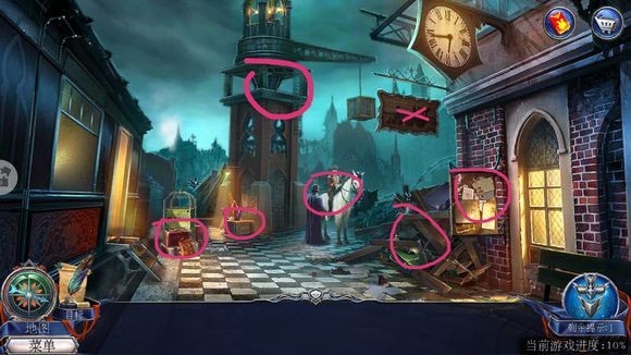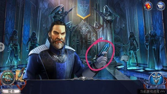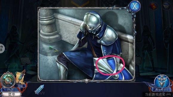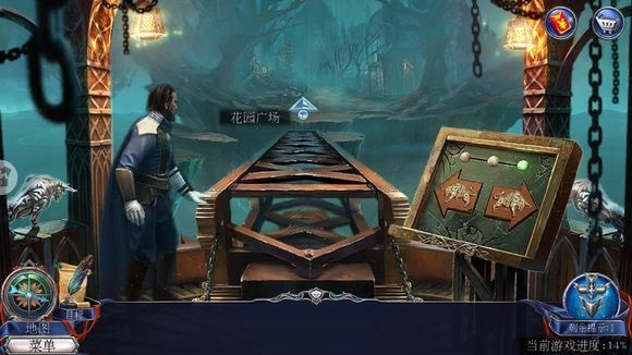 在教堂大门右侧柱子放置照片夹层,按提示调整彩色球顺序,成功开启教堂大门。