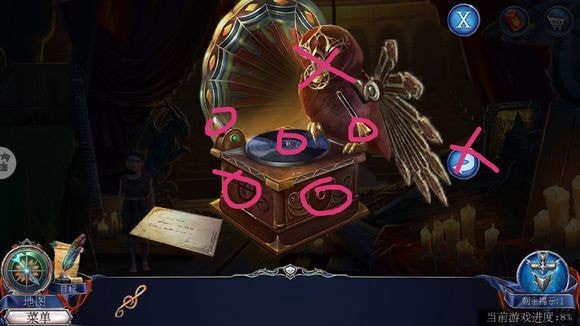 拼图完成后,将显示破解提示,请牢记每种颜色对应的形状及中心“十X”标记的颜色。