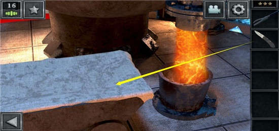 首先点击场景地面的两个道具,获得长钳子与匕首,随后点击熔炉槽口。