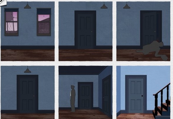 第三个场景里,主人公在多个房间间穿梭,却因路径不当被埋伏的警察当场抓获。但若按图示调整插画顺序,他将巧妙避开警察视线,从楼梯成功脱身。即便明知主角身份可疑,玩家仍会忍不住为其一次次化险为夷而喝彩。
