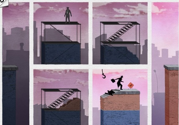 接下来的关卡中,主人公虽躲过枪击,却因踩上破损砖块失足坠楼。这“豆腐渣工程”令人愤慨!解决方法很简单:如图所示,调换第3、4、5张图片的位置。如此一来,主人公不仅从警察上方悄然通过,还借助水管直达下一层,完美避开危险区域,一举两得。
