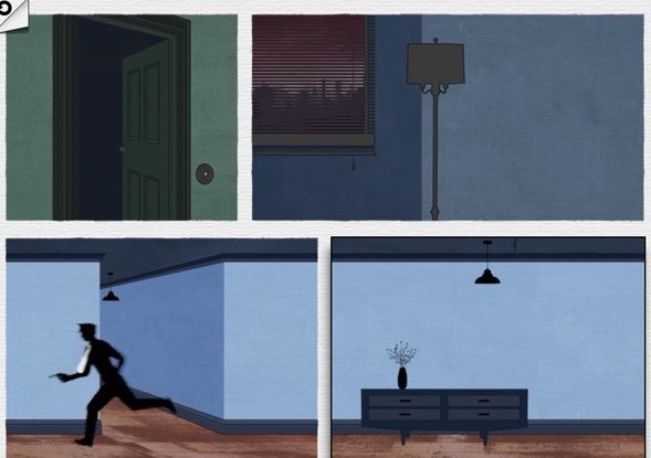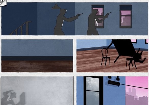 第四个场景中,主人公被两名警察逼至楼梯顶端。若不干预,警察开枪将其击中,任务失败。但若调换图片顺序,当子弹射出时,主人公飞身跃起,翻倒的桌子恰好挡住子弹,他随即跳窗逃生,动作干净利落!
