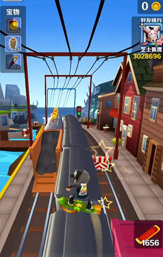 2、沿途收集金币、切换角色、购买强力道具,在复杂建筑群中展开惊险对决;