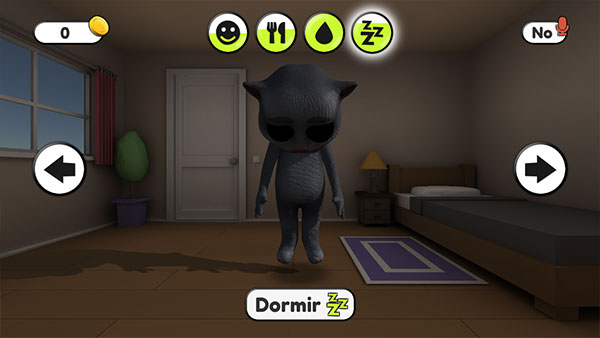 6、屏幕顶部显示四项状态值:趣味、饥饿、清洁和睡眠。其中“趣味”可通过小游戏提升,前往“书房”并点击下方游戏按钮即可开始。