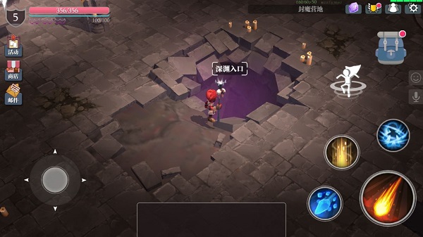 营地中央那口泛着神秘紫光的大坑,即是深渊入口。点击“跳坑”图标即可选择探险模式: