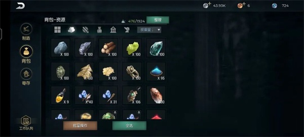 新手常见资源中,石头、金属、木头属于高负重物品;矿物方面,石英、硫磺、硝石重量相近,唯独浮石极轻,即便携带数千单位也不会显著增加负担。矿物价值排序为:石英 > 硫磺 > 硝石 > 浮石。此外,“按类别排序”功能便于查看武器耐久,及时修理。特别提醒:饲料极重,切勿随意携带。