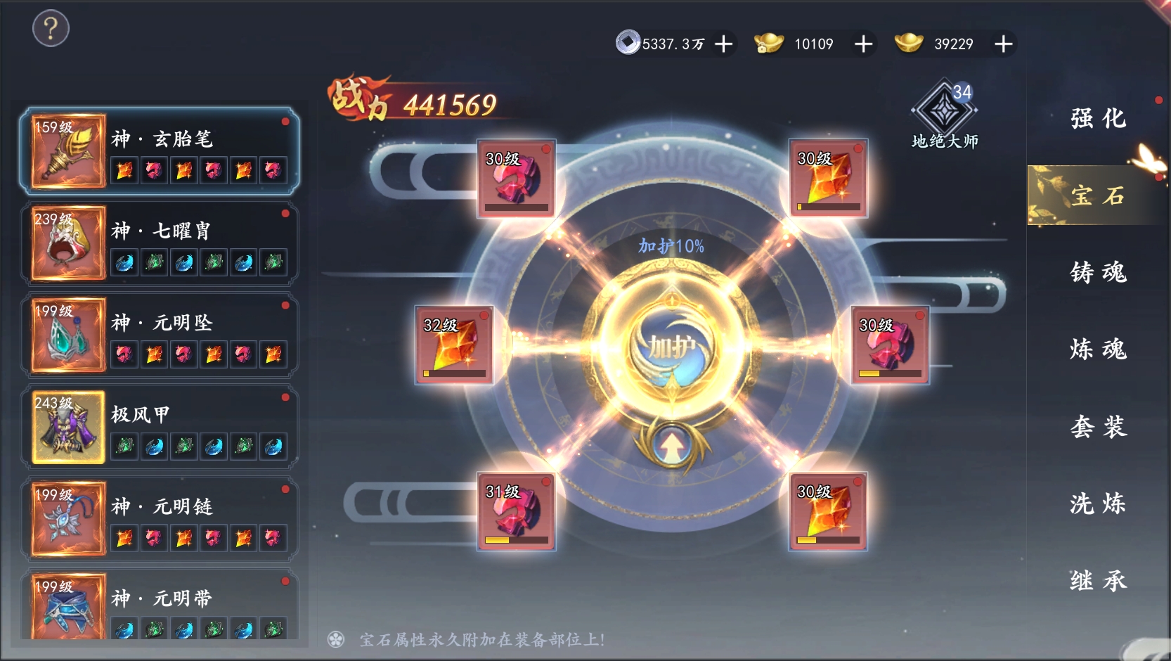技巧1:宝石升级建议均衡推进,整体性价比最高;
