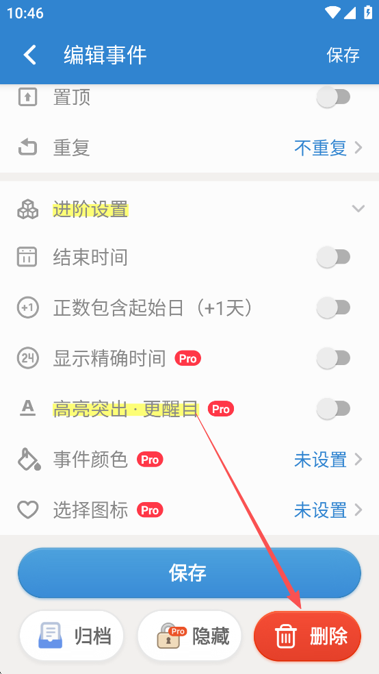 3、在编辑页面底部选择“删除”选项,确认后即可移除该日期记录。