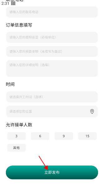 3、按提示填写具体服务需求、预约时间及联系方式,确认无误后点击“发布”,即可等待附近的专业师傅接单上门服务。